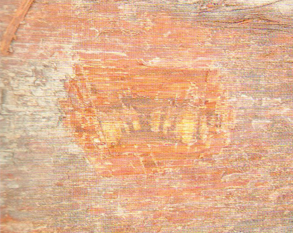 ●識(shí)別要點(diǎn):樹皮極薄。軸向薄壁組織短翼狀、聚翼狀、環(huán)管束狀及不規(guī)則弦向帶狀。管孔內(nèi)侵填體豐富。生材有檸檬味;木材有油性感。材質(zhì)重硬。本屬另一種為馬氏鐵樟木E.malagangai,較坤甸鐵樟木徑級(jí)小,材色紅,質(zhì)輕,有較長的翼狀薄壁組織。