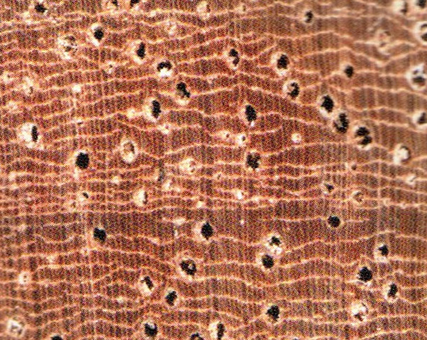 光澤弱。紋理略交錯;結(jié)構(gòu)細(xì);質(zhì)重硬至甚重硬;強度高;干縮大。加工困難,切面光滑;含硅石,易鈍刀;油漆、膠黏性能好;握釘力強,須先鉆孔。略耐腐。干燥快,略翹曲、劈裂。氣干密度0.8 ~ 1.0 g/cm3。